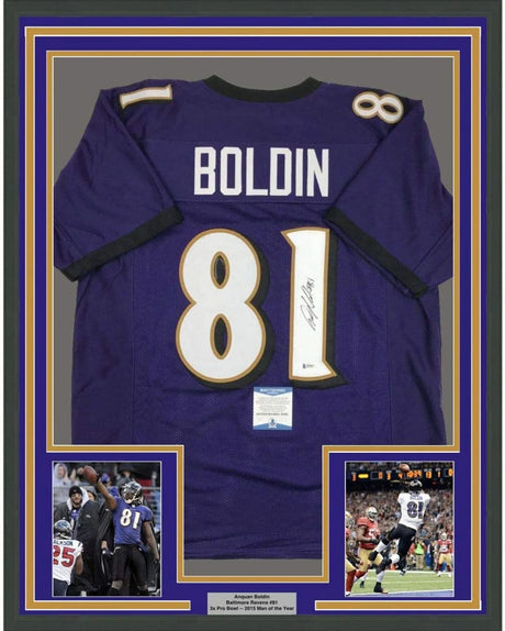 Framed Autographed/Signed Anquan Boldin 35x39 B...
