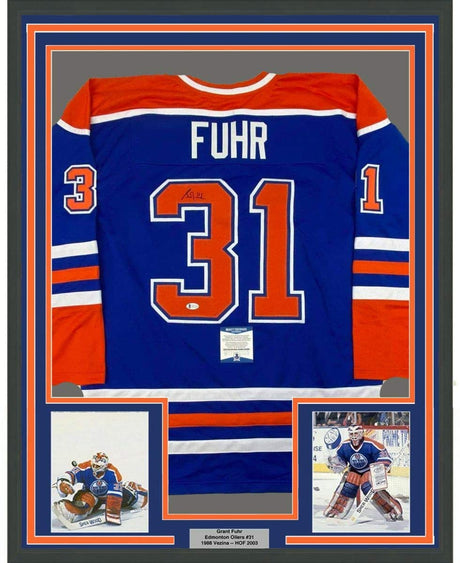 Framed Autographed/Signed Grant Fuhr 35x39 Edmo...