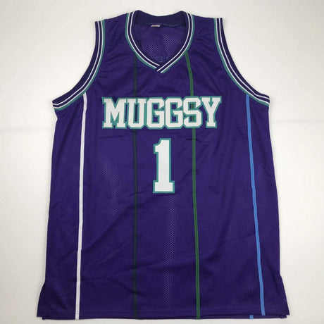Autographed/Signed Muggsy Bogues Charlotte Purp...