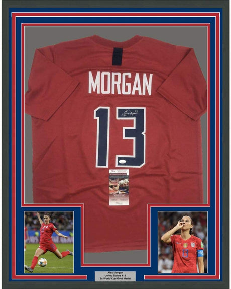 Framed Autographed/Signed Alex Morgan 35x39 Red...