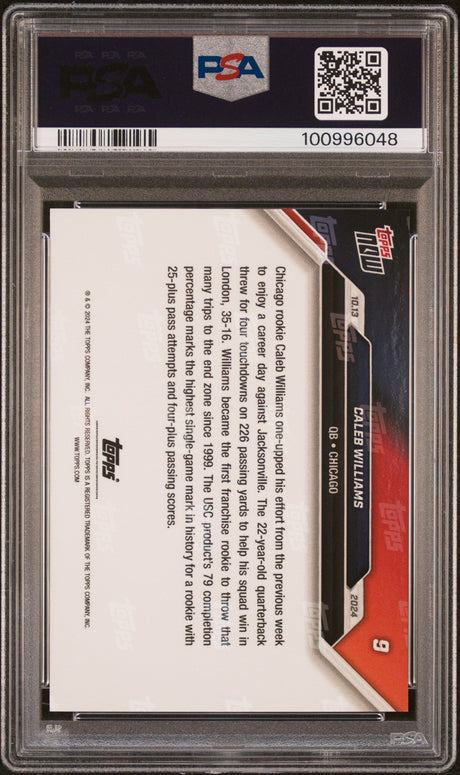 Graded 2024 Topps Now Caleb Williams #9 Rookie ...