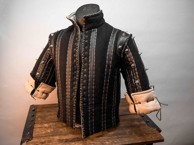 Short brown gambeson with thorns for LARP made by SokolWorkshop. Artificial aging creates effect of old age. Made according your individual measurements. NOTE: This item can be personalized on request (contact us).