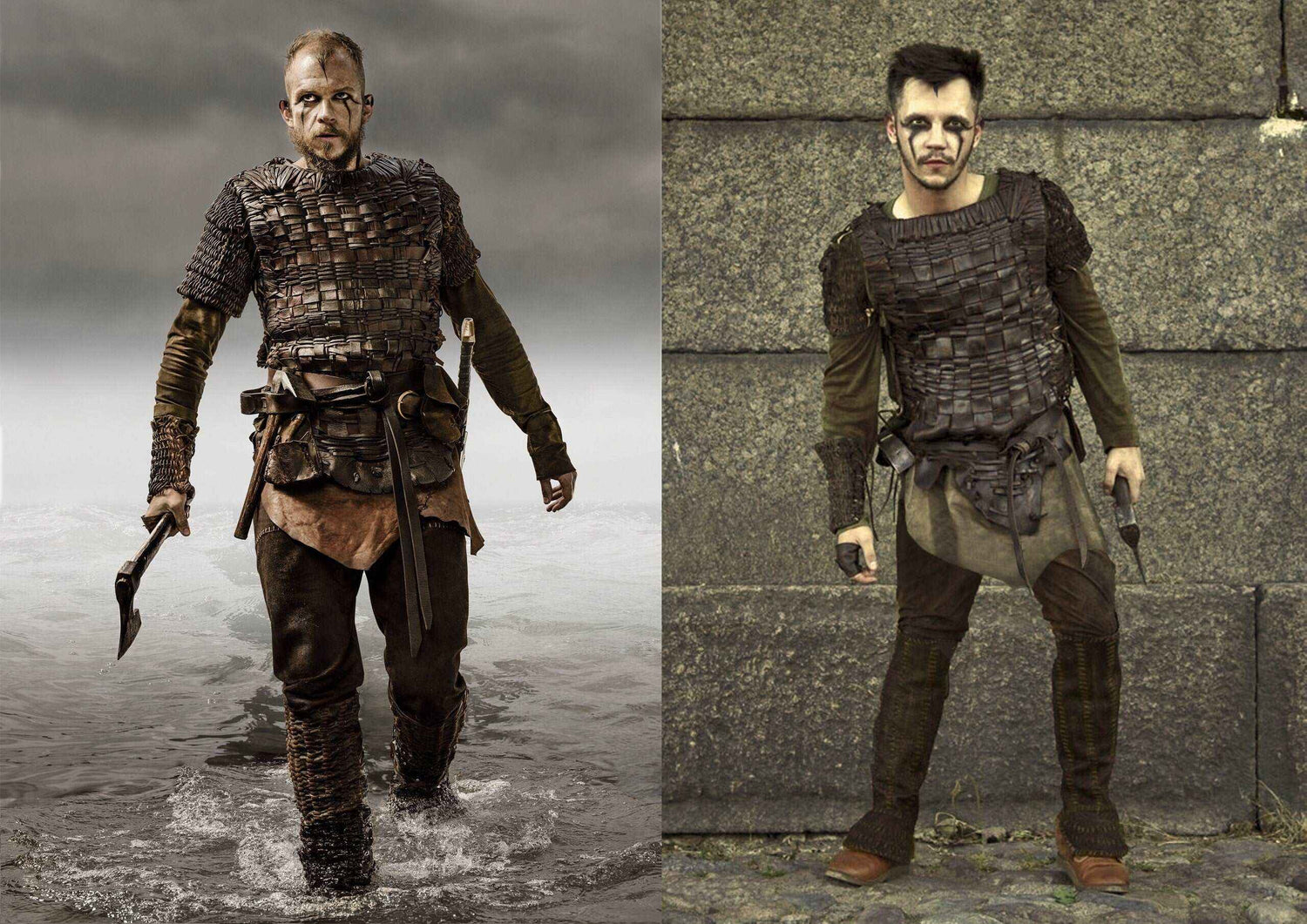 Viking armor set "Floki" for LARP made by SokolWorkshop. An exact copy of armour of Floki from series Vikings. Artificial aging creates the effect of old age.