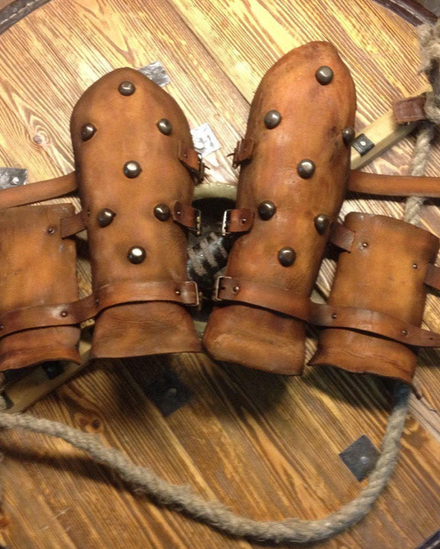 Medieval Viking Leather Bracers for LARP. Imagined and created by our leather team. These bracers will be a great part of your viking armour or outfit. Artificial aging creates the effect of old age. Can be made of brown or black leather, with brass or stainless steel accents.