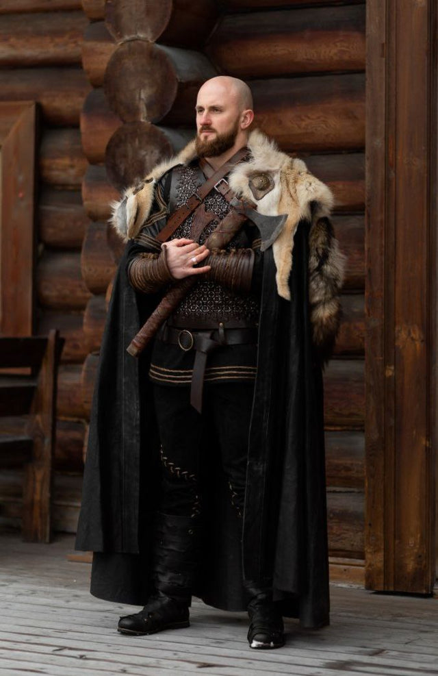 Discover the fierce spirit of Ragnar with this Viking-inspired costume set. Crafted with meticulous attention to detail, this armor ensemble includes leather trousers, boots, a shirt, a leather cuirass, and wrist guards. Whether for cosplay, LARP events, or themed parties, this custom-made medieval armor from SokolArmory embodies rugged authenticity. Unleash your inner warrior and conquer any occasion with this captivating Ragnar cosplay armor.