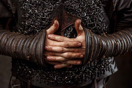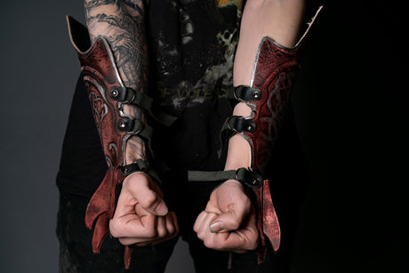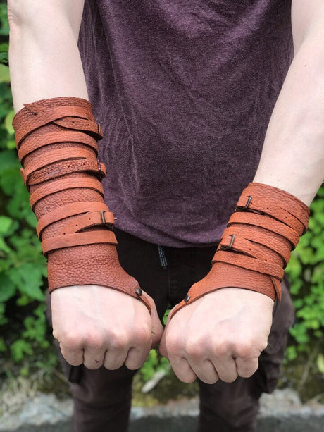 Medieval leather bracers with hand protection