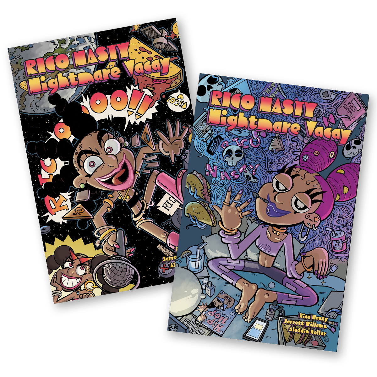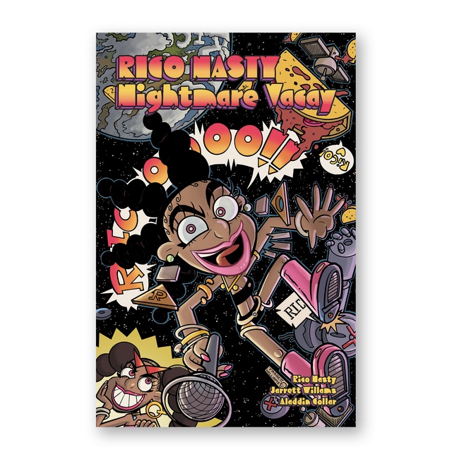 Rico Nasty is deep in space recording her latest album. Unfortunately, an accidental cannabis nap sends her spaceship, CAM, crashing onto Earth! Waking up at a soulless android facility, she’ll have to survive on noodles while searching for her missing ship—but at least she has the help of her new, dope girlfriends, Taco Bella & Trap Levigne. Together, they’ll battle countless androids while trying to find CAM and finish her new album.