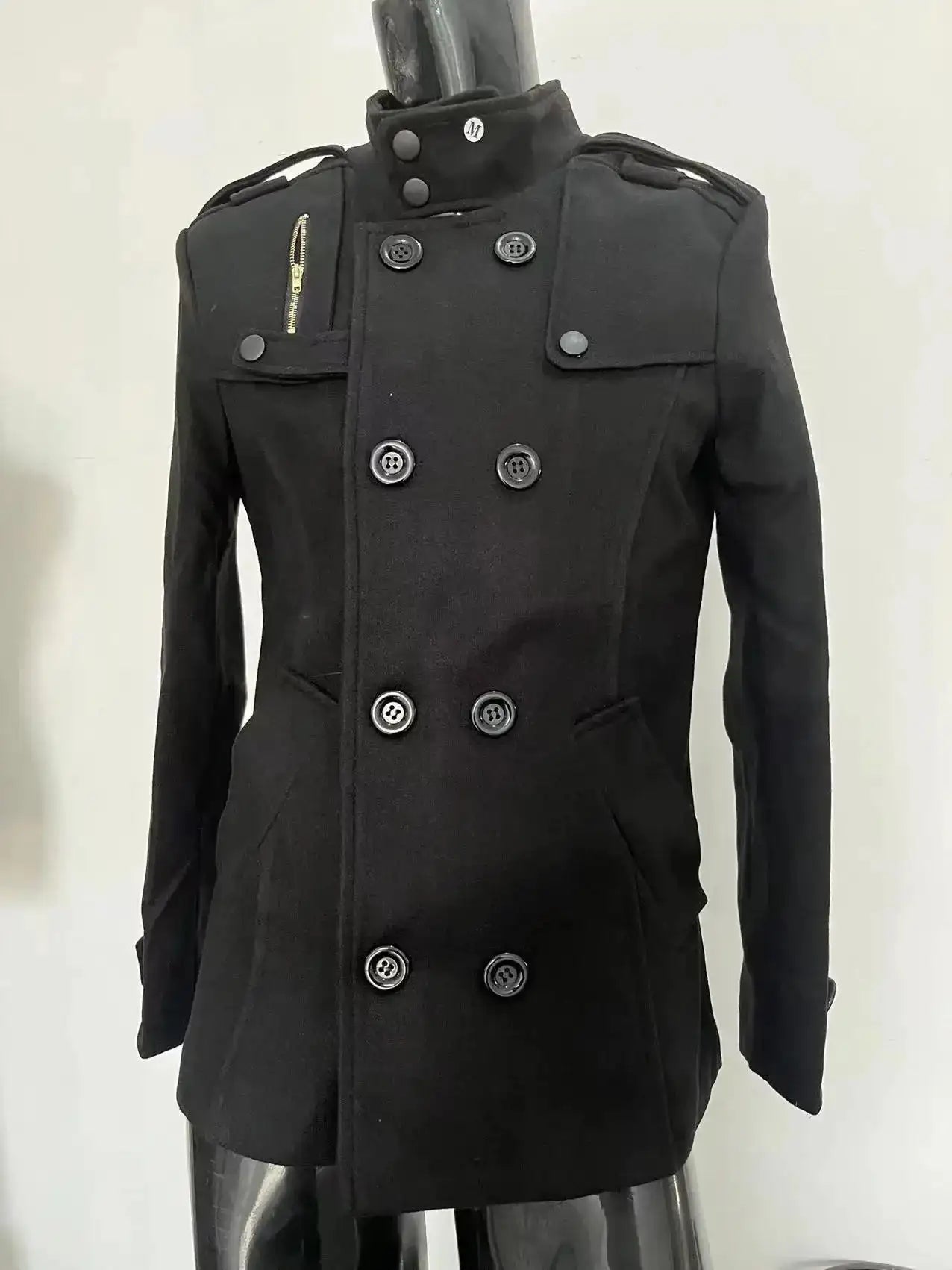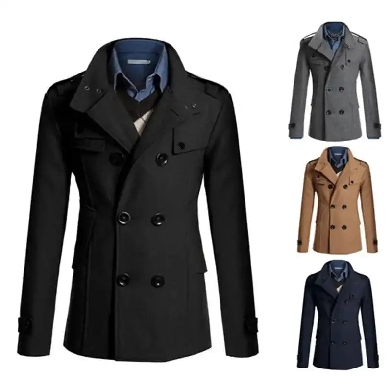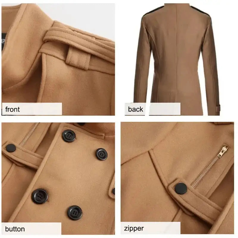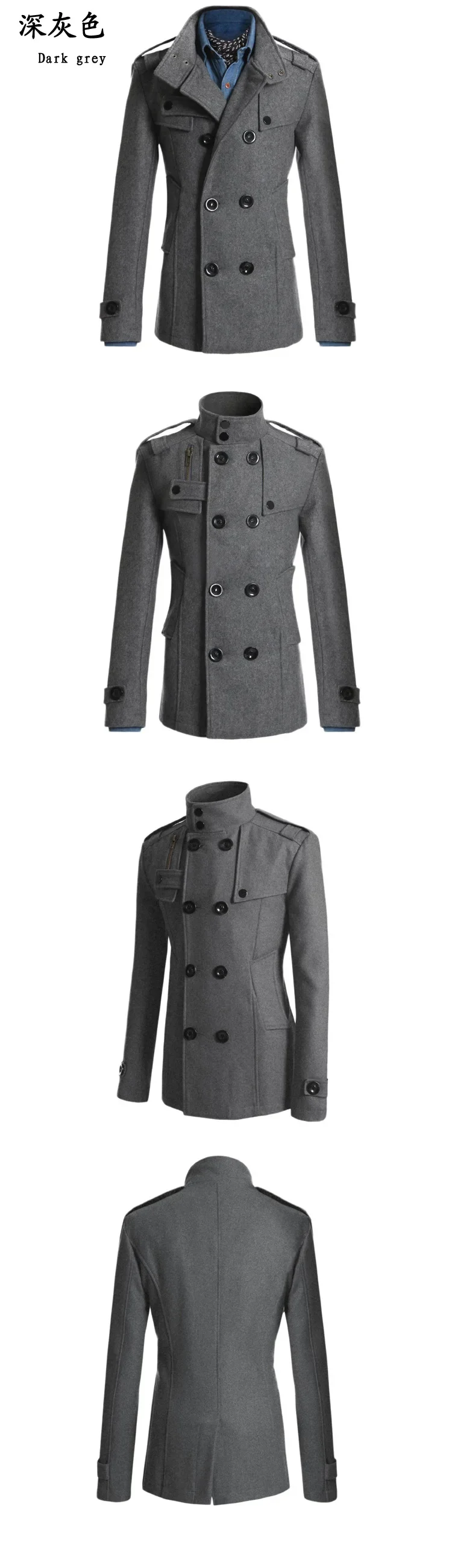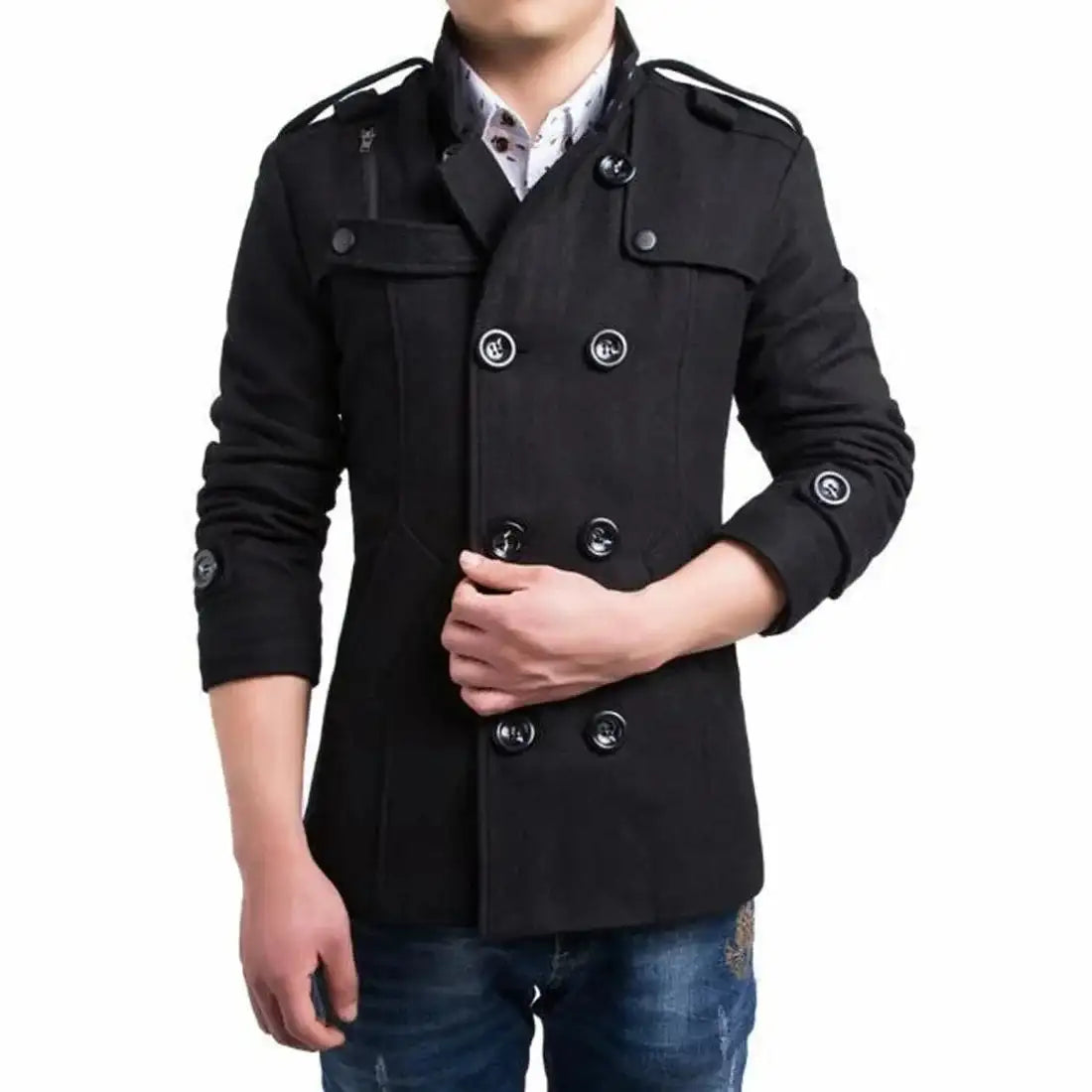Men Slim Fit Woolen Coats Solid Color Male Casual Long Sleeve Outerwear Autumn Winter Double Breasted Mid Length Windbreaker