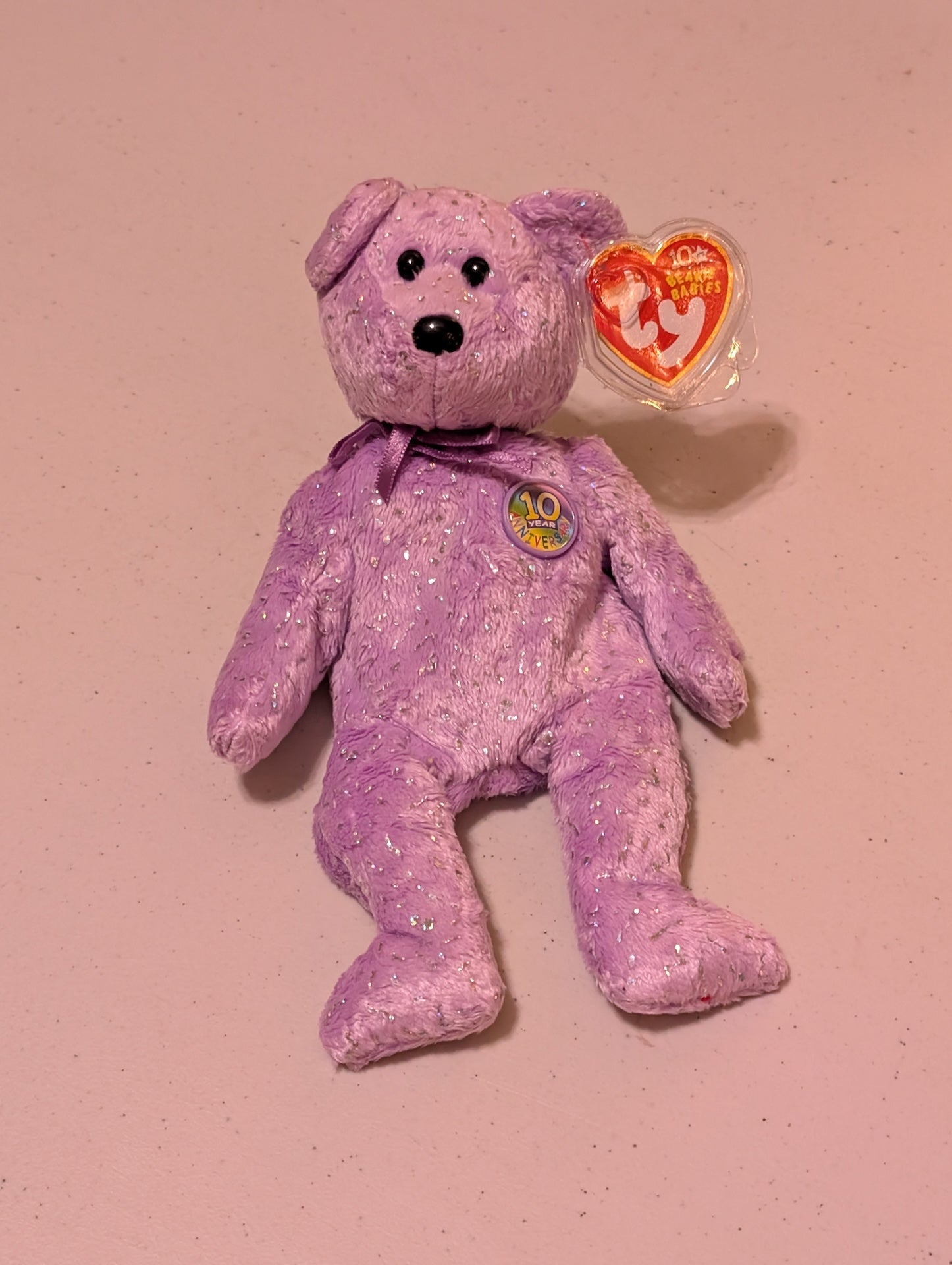 10th Anniversary Hope the Bear - Ty Beanie Baby (Purple, 2003, Plush Toy, Stuffed Animal, MWMT, Vintage, Retired)