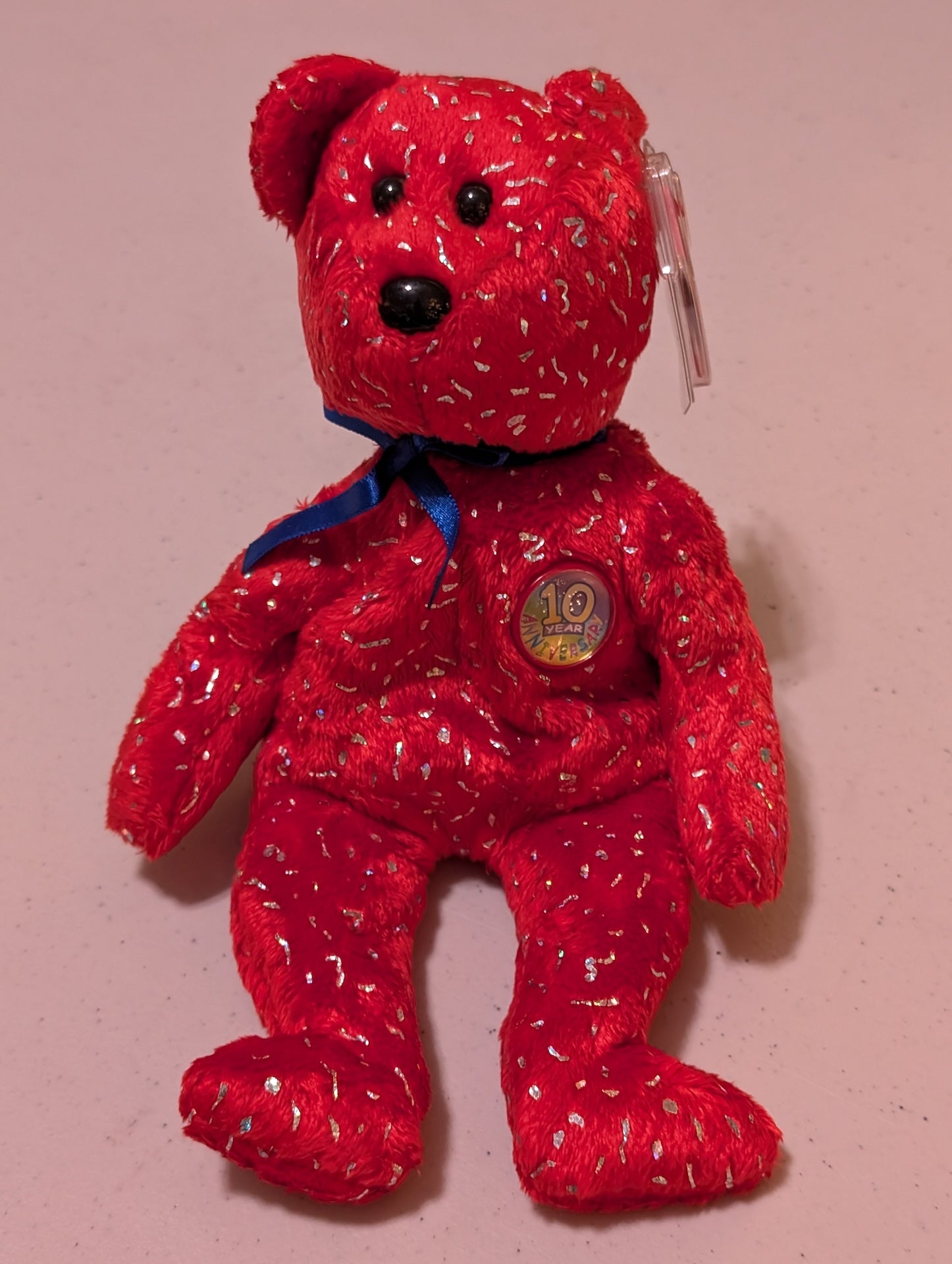 10th Anniversary Ruby the Bear - Ty Beanie Baby (Red, 2003, Plush Toy, Stuffed Animal, MWMT, Vintage, Retired)