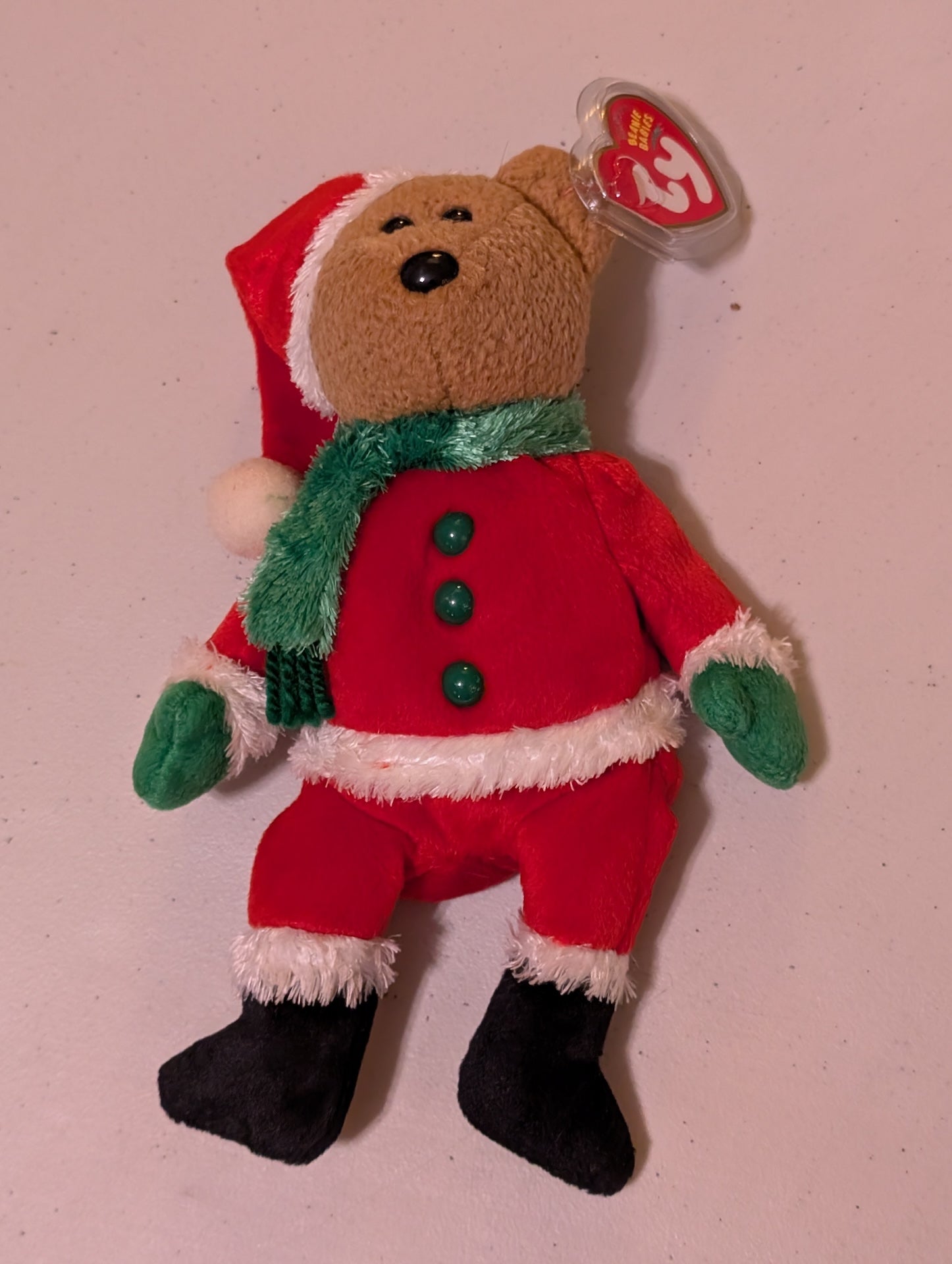 1999 Holiday Teddy the Bear - Ty Beanie Baby (Brown, Red, Green, 1999, MWMT, Plush, Toy, Stuffed Animal, Vintage, Retired)