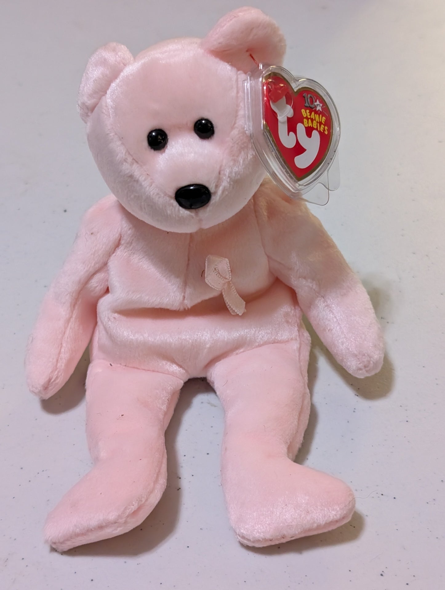 Awareness the Bear - Ty Beanie Baby (Pink, 2003, Plush Toy, MWMT, Stuffed Animal, Vintage, Retired, Plushie)