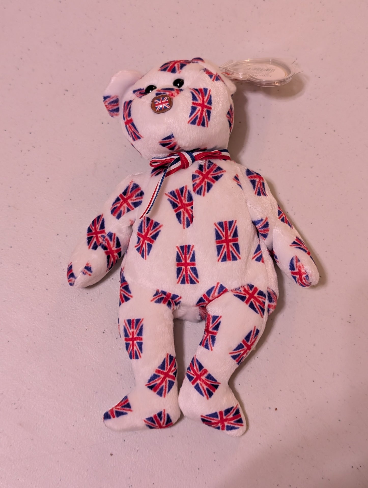 Britannia the Bear - Ty Beanie Baby (White, Red, Blue, 1997, MWMT, Plush, Toy, Stuffed Animal, Vintage, Retired)