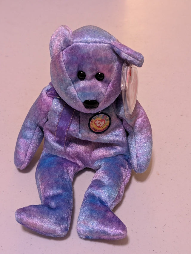 Clubby IV the Bear - Ty Beanie Baby (Purple, Blue, 2001, Plush Toy, MWMT, Stuffed Animal, Vintage, Retired, Plushie)