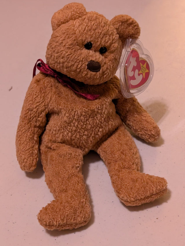 Curly the Bear - Ty Beanie Baby (Brown, 1996, Plush Toy, MWMT, Stuffed Animal, Vintage, Retired, Plushie)