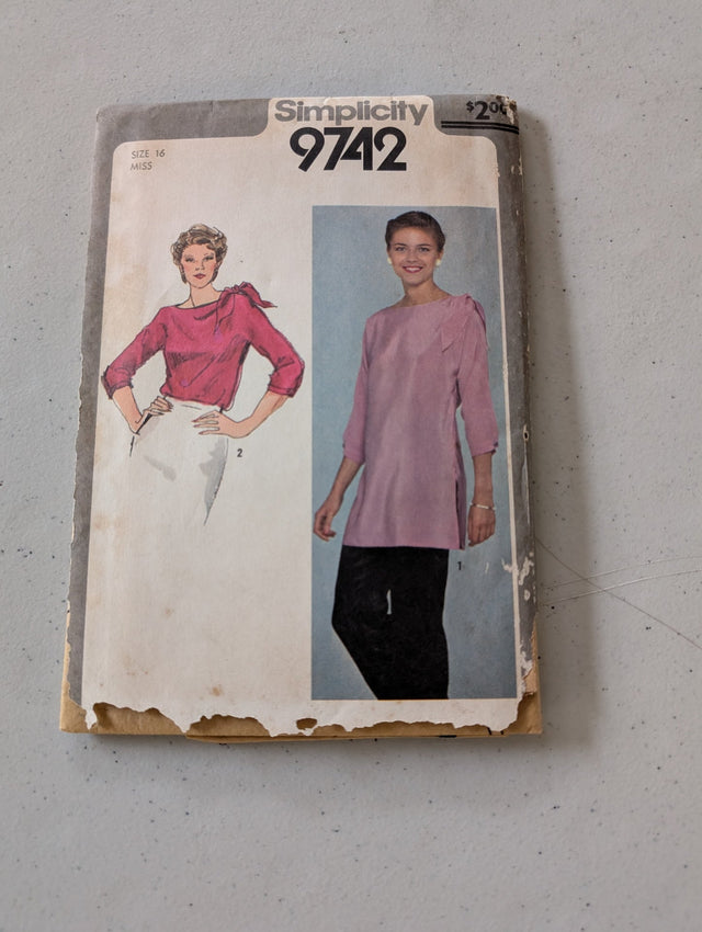 Simplicity 9742 Bateau Boat Neckline Bow Tie Shoulder Tunic Top 36" UK 14(Sewing Pattern Vintage)