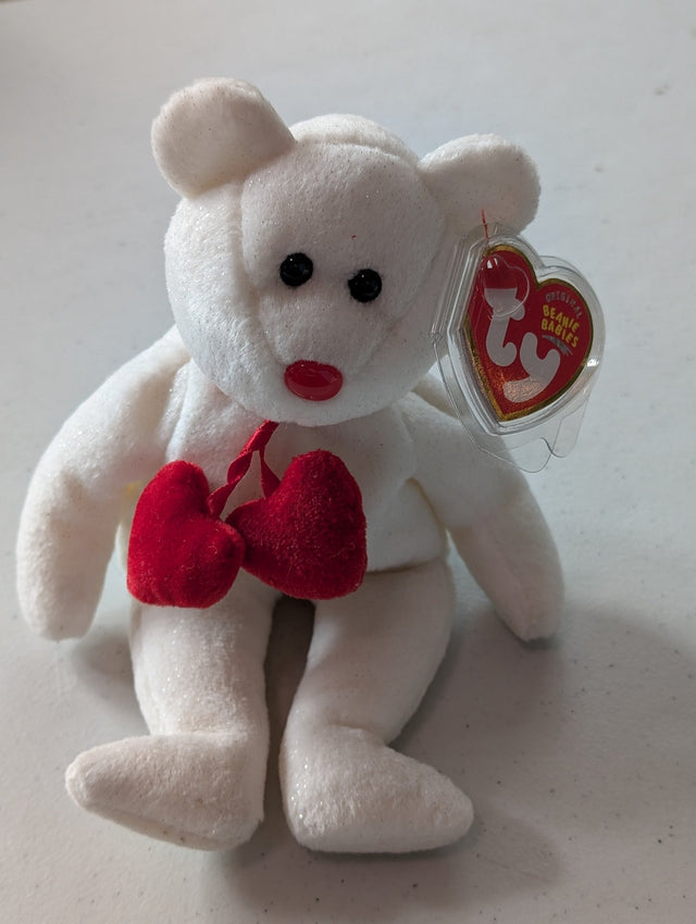Smoochy the Bear - Ty Beanie Baby (White, 1994, Plushie, Toy, Stuffed Animal, MWMT, Vintage, Retired)