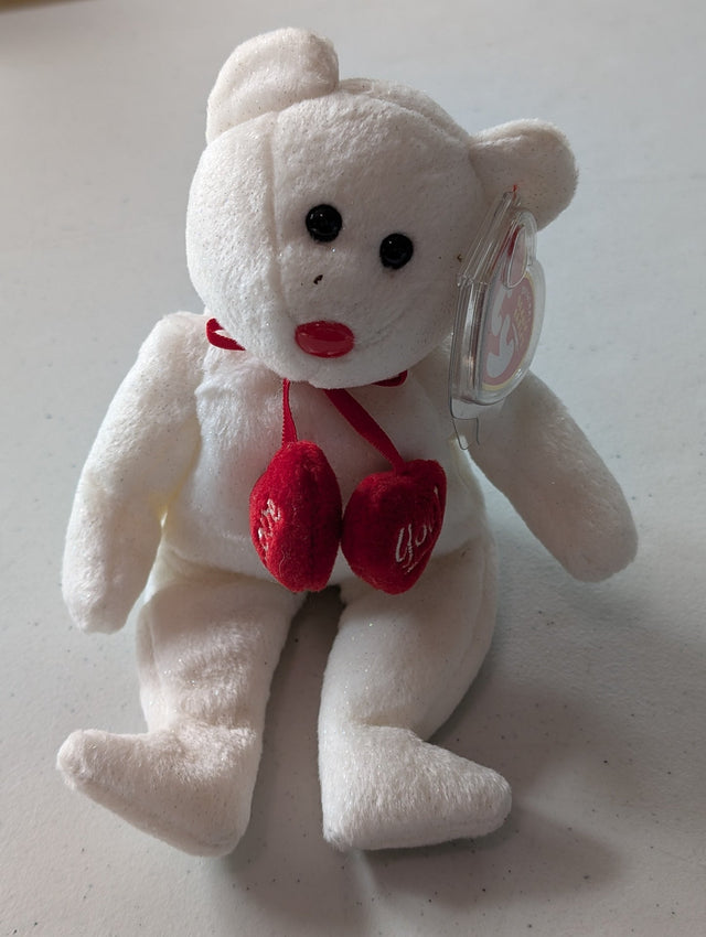 Smoochy the Bear - Ty Beanie Baby (White, 2001, Plushie, Toy, Stuffed Animal, MWMT, Vintage, Retired)