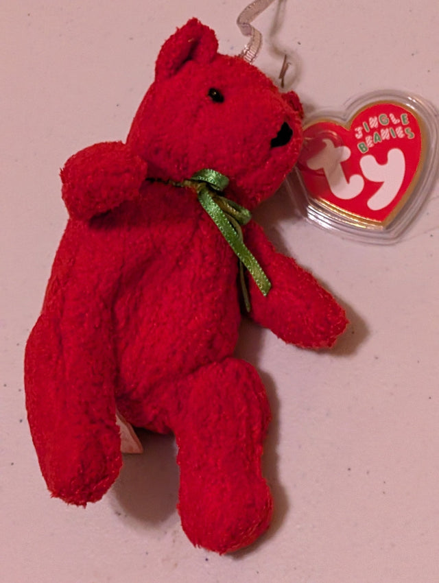Teddy the Bear - Ty Jingle Beanie (Red, Green, 1999, Plush, Toy, Stuffed Animal, MWMT, Vintage, Retired)