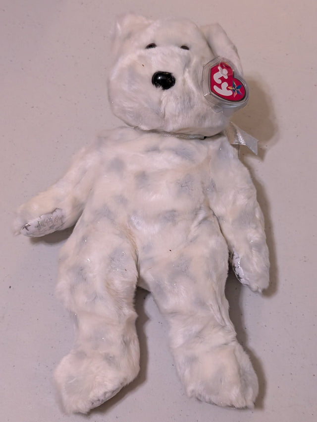 The BEGINNING BEAR Ty Beanie Buddy 14” Sparkles White w/Silver Stars (MWMT, Vintage, Retired, with Tag, VTG, Stuffed Animal, Plush, Toy)