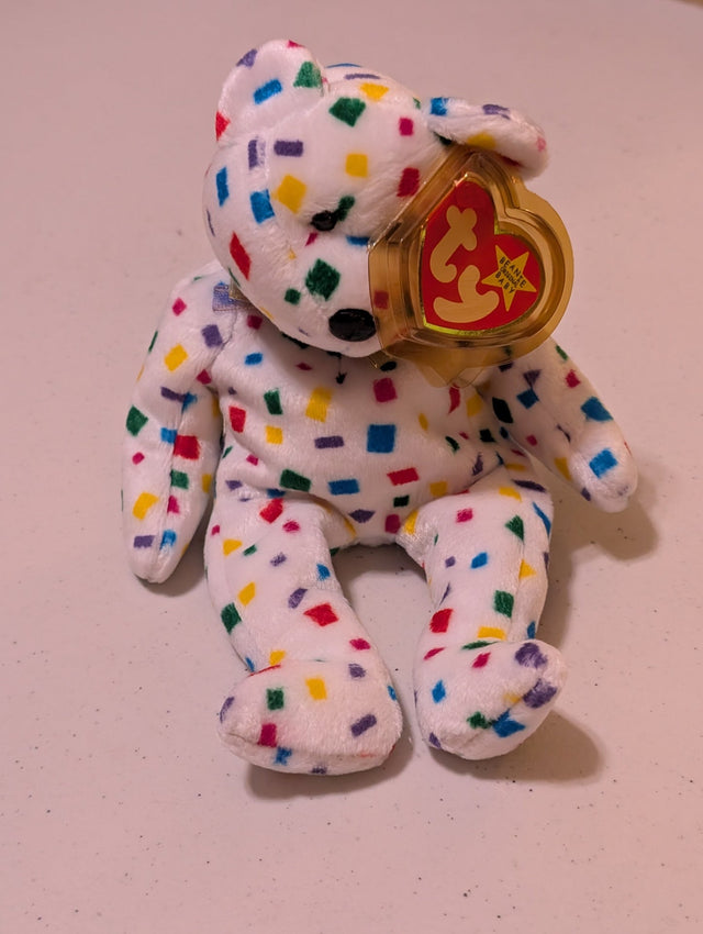 Ty 2K the Bear - Ty Beanie Baby (White, Confetti, 2000, Plush, Toy, MWMT, Stuffed Animal, Vintage, Retired, Plushie)
