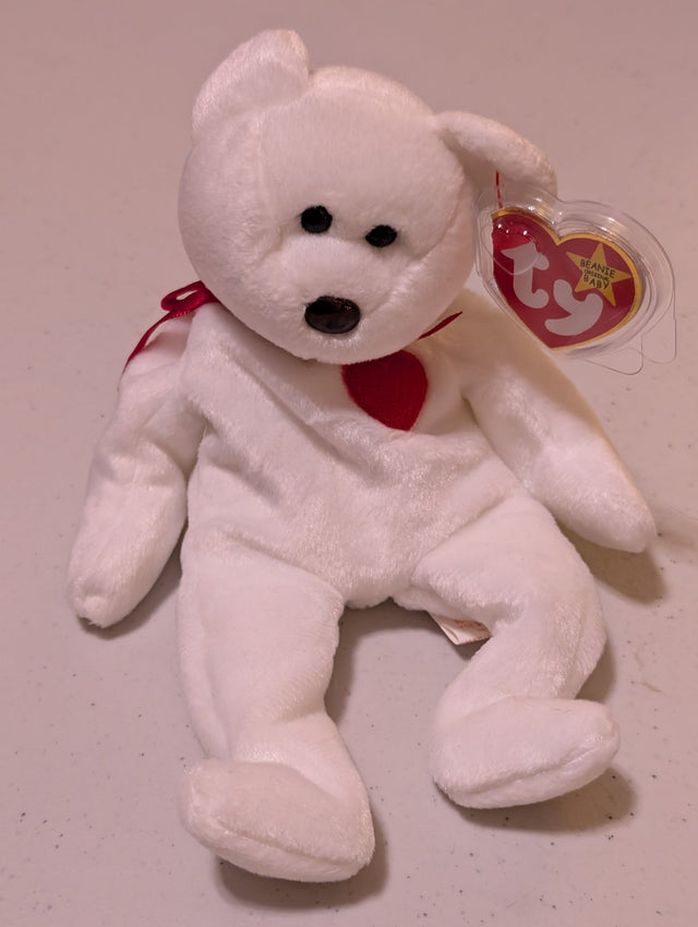 Valentino the Bear - Ty Beanie Baby (White, 1994, Plush Toy, Stuffed, Animal, MWMT, Vintage, Retired)
