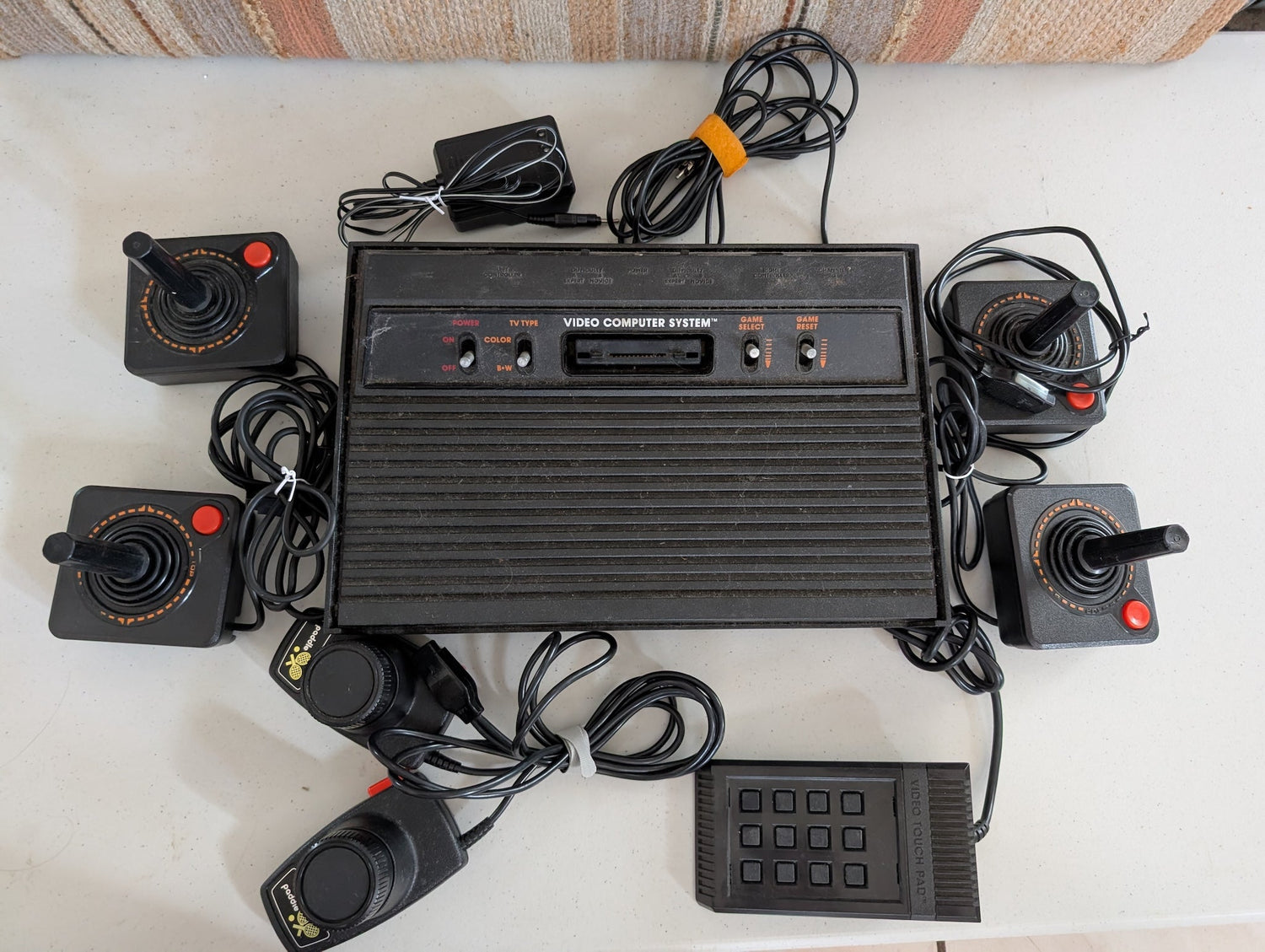 Vintage Atari 2600 CX2600A Console four joysticks paddles and keypad