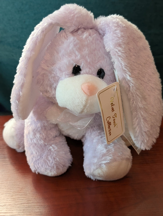 Vintage Commonwealth toys Purple Bunny Rabbit Plush white ears feet face sheer bow Easter 2005