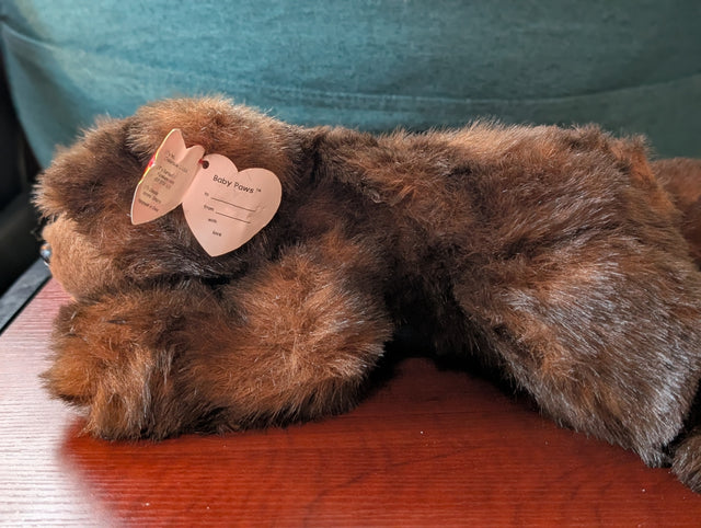 Vintage TY Classic Beanie "BABY PAWS" 11" Plush Brown BEAR 1996