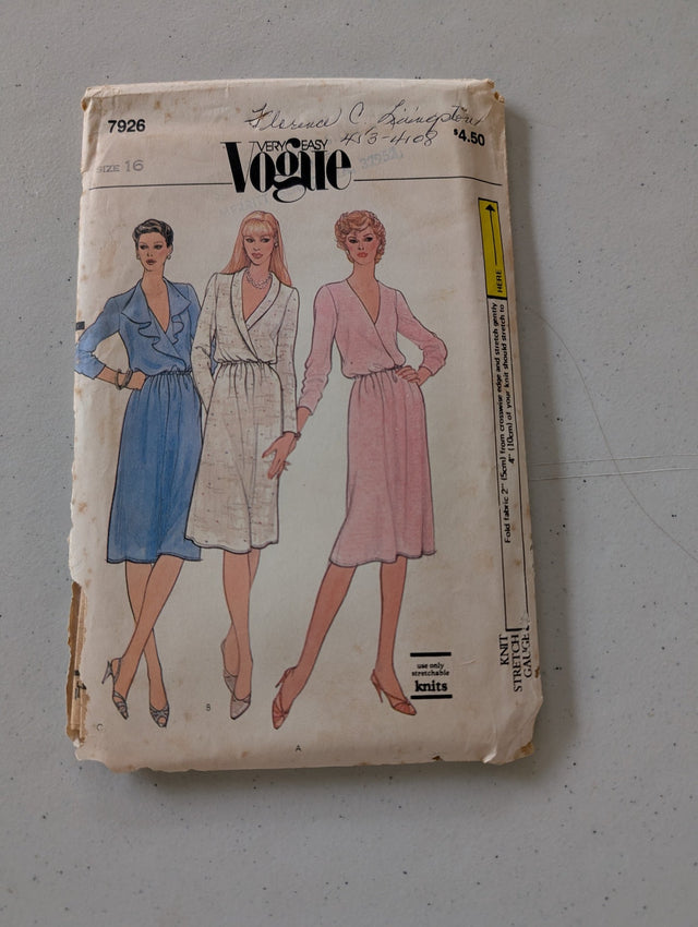 Vogue Very Easy Dress 7926 Sz 10 (Sewing Pattern Vintage)