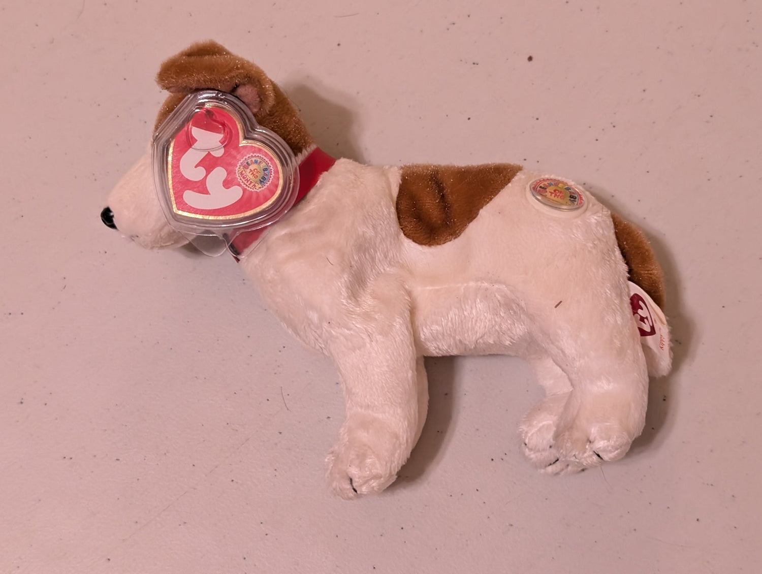 Wish the Dog - Ty Beanie Baby (White, Brown, 2000, MWMT, Plush, Toy, Stuffed Animal, Vintage, Retired)