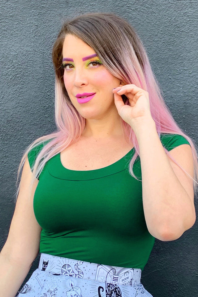 Retro Boat Neck Top in Kelly Green