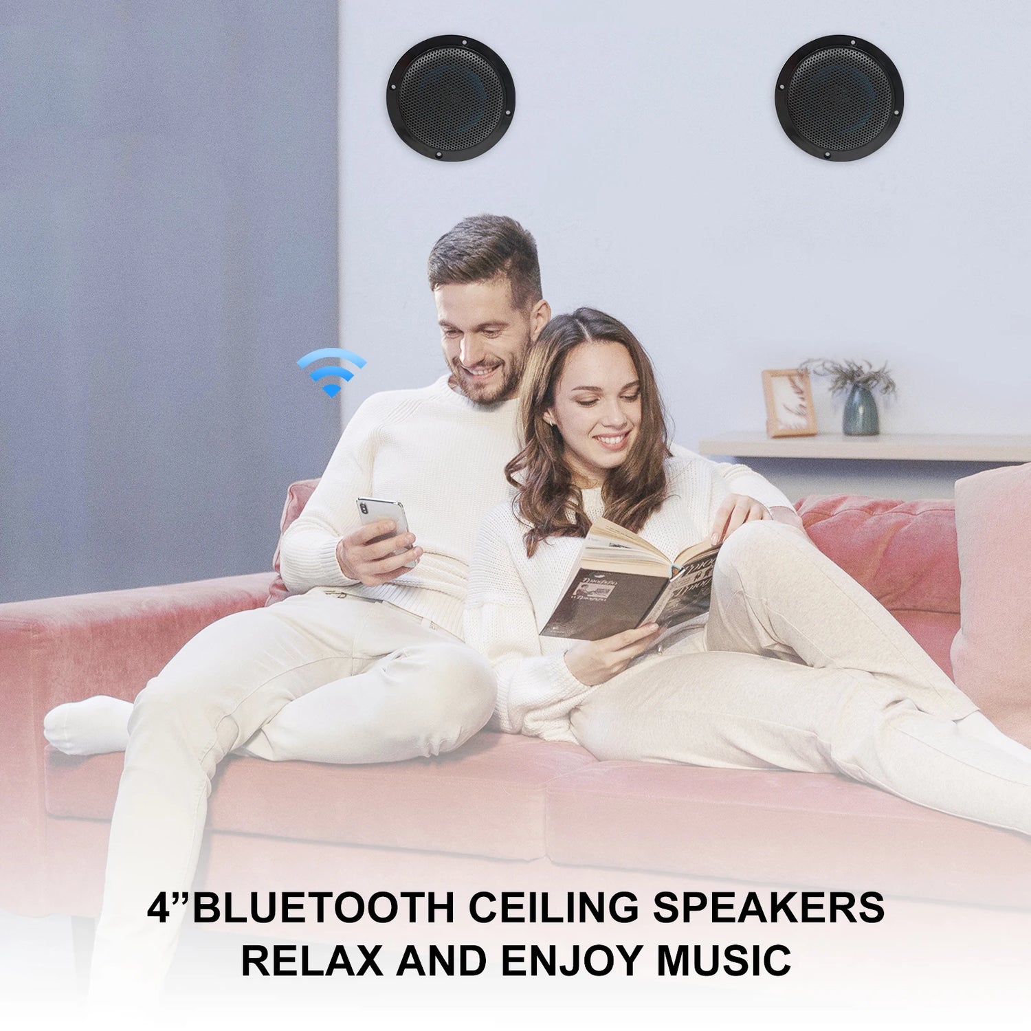 Herdio 2PCS 4 Inch Ceiling Bluetooth Speaker Kit Water Resistant 160W Marine Speakers For Bathroom Kitchen Home Outdoor Camper