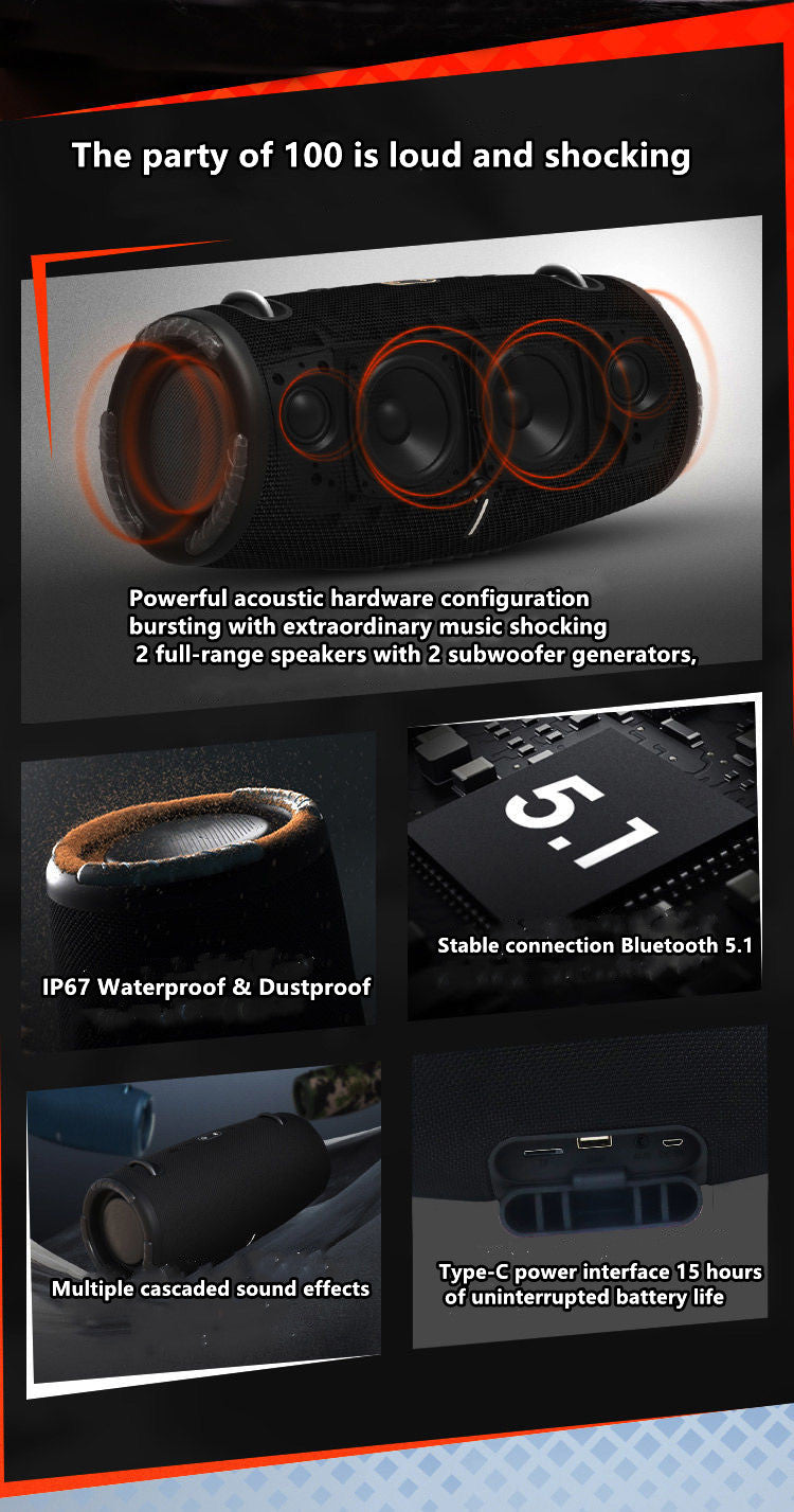 High power bluetooth speaker portable RGB colorful light waterproof wireless subwoofer 360 stereo surround TWS FM boombox