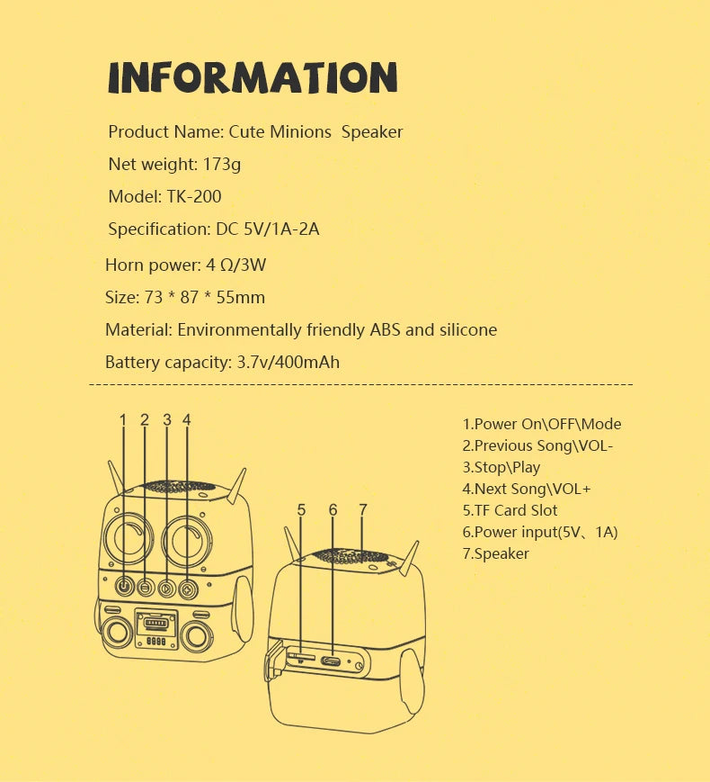 Wireless Bluetooth Speakers TK-200 Desktop Decoration Portable Outdoor Smart Music Player IP65 Waterproof Support TF Card - Yellow is backordered and will ship as soon as it is back in stock.