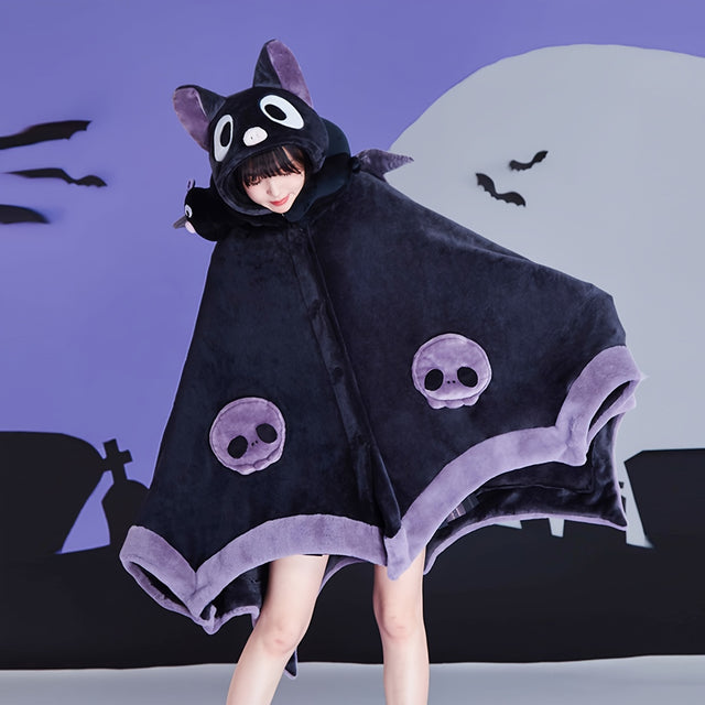 Cozy Bat-Themed Hooded Wearable Blanket with Detachable Nose - Soft Flannel, Machine Washable for Autumn & Winter
