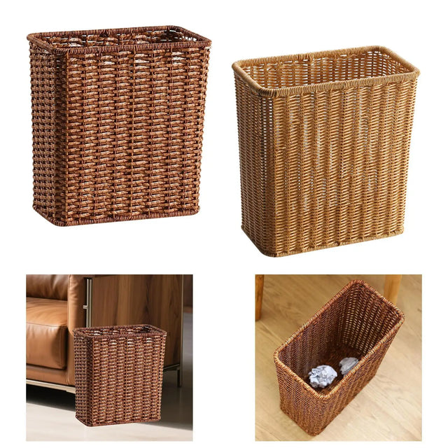 【Design】: This trash can features a rattan like weave, adding a touch of sophistication to any room, whether it's the living room or bedroom