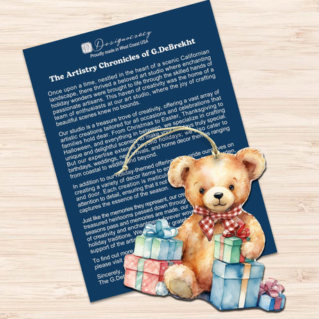 Christmas Teddy Bear Decorative Wooden Ornament...