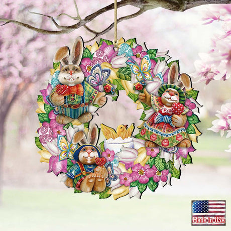 Easter Family Wreath Wooden Ornaments by G. DeB...