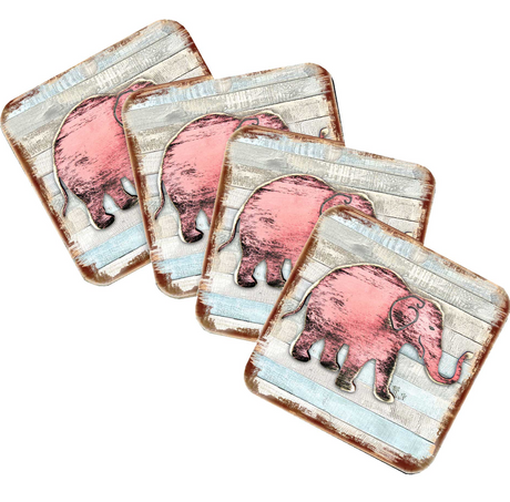 Elephant Wooden Cork Coasters Gift Set of 4 by ...