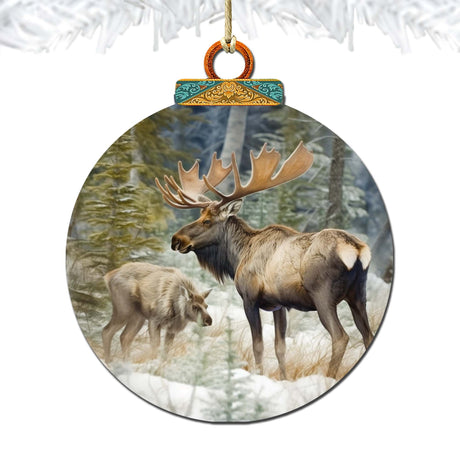 Elk in Alaskan Heights Wooden Ornaments by G.De...