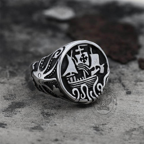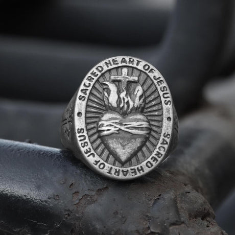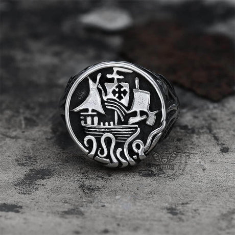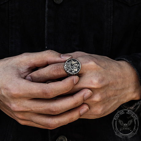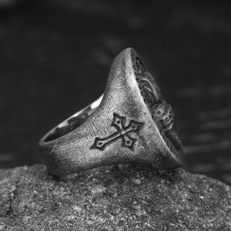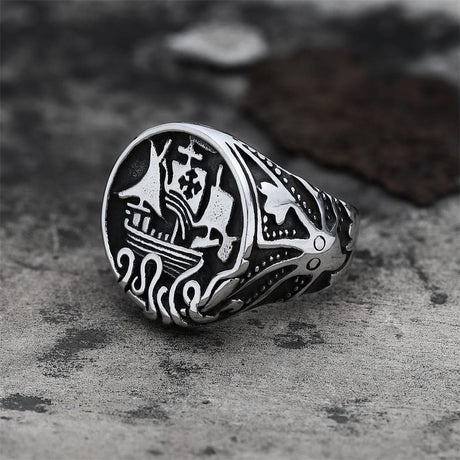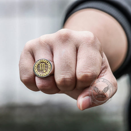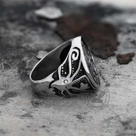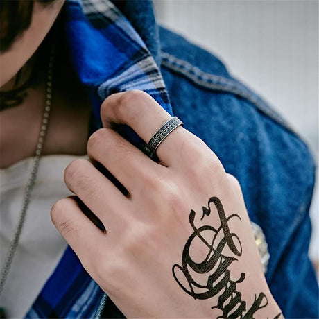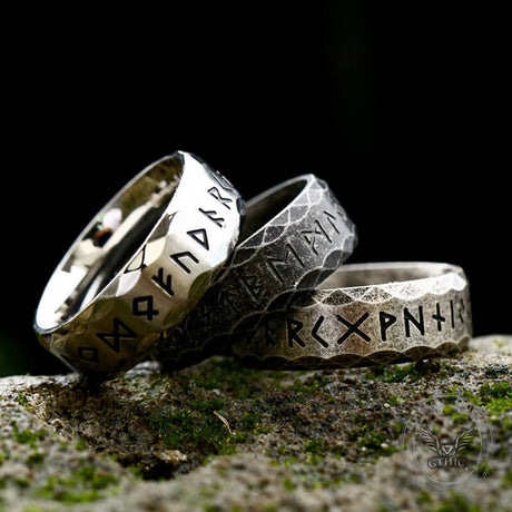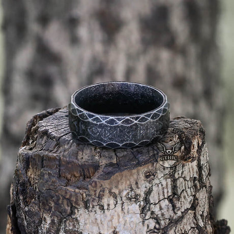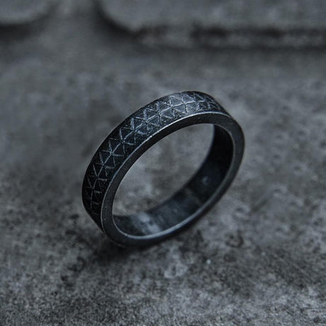 Scaled Pattern Runes Stainless Steel Viking Ring