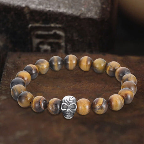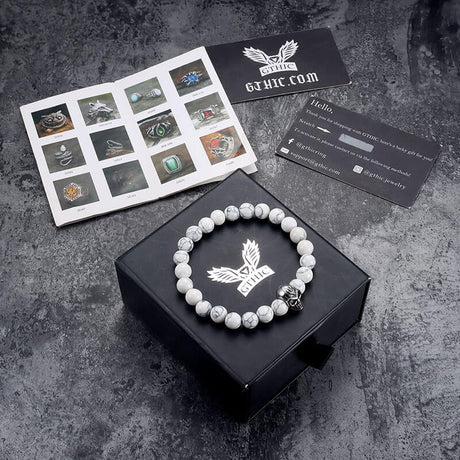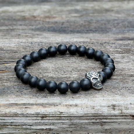 Skull Stainless Steel Natural Stone Beads Bracelet