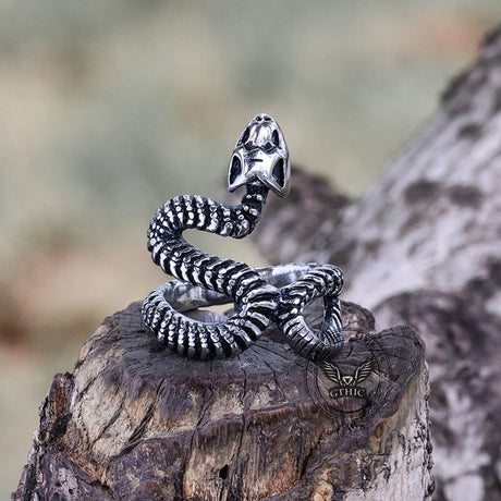 Snake Vertebrae Bone Stainless Steel Skull Ring