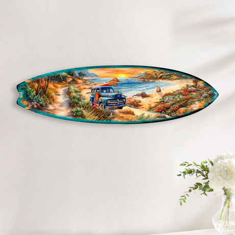 Morning Beach Surfboard Coastal Wall Art by G. ...