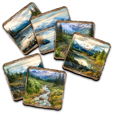 Mountain Goat Wooden Cork Coasters Gift Set of ...