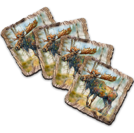 Moose Wooden Cork Coasters Gift Set of 4 by Nat...