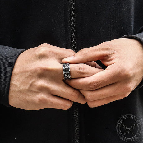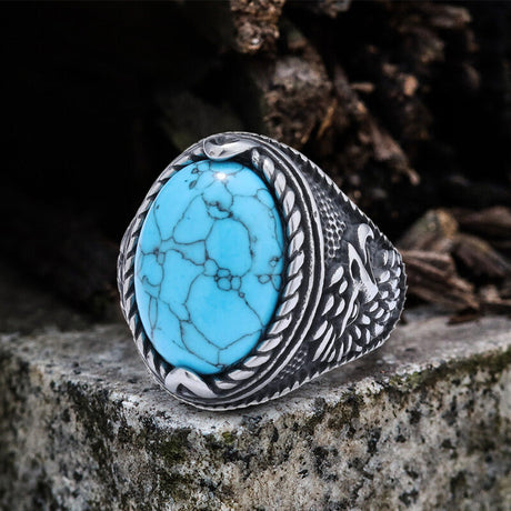 Vintage Turquoise Inlaid Stainless Steel Ring