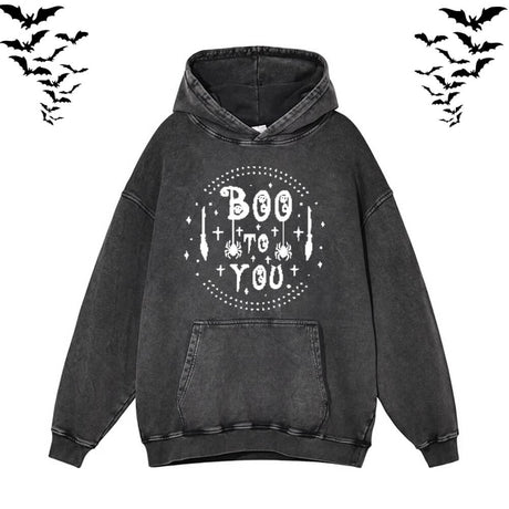 Boo To You Vintage Washed Hoodie Sweatshirt