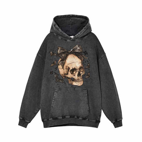 Bow Knot Skull Vintage Washed Hoodie Sweatshirt